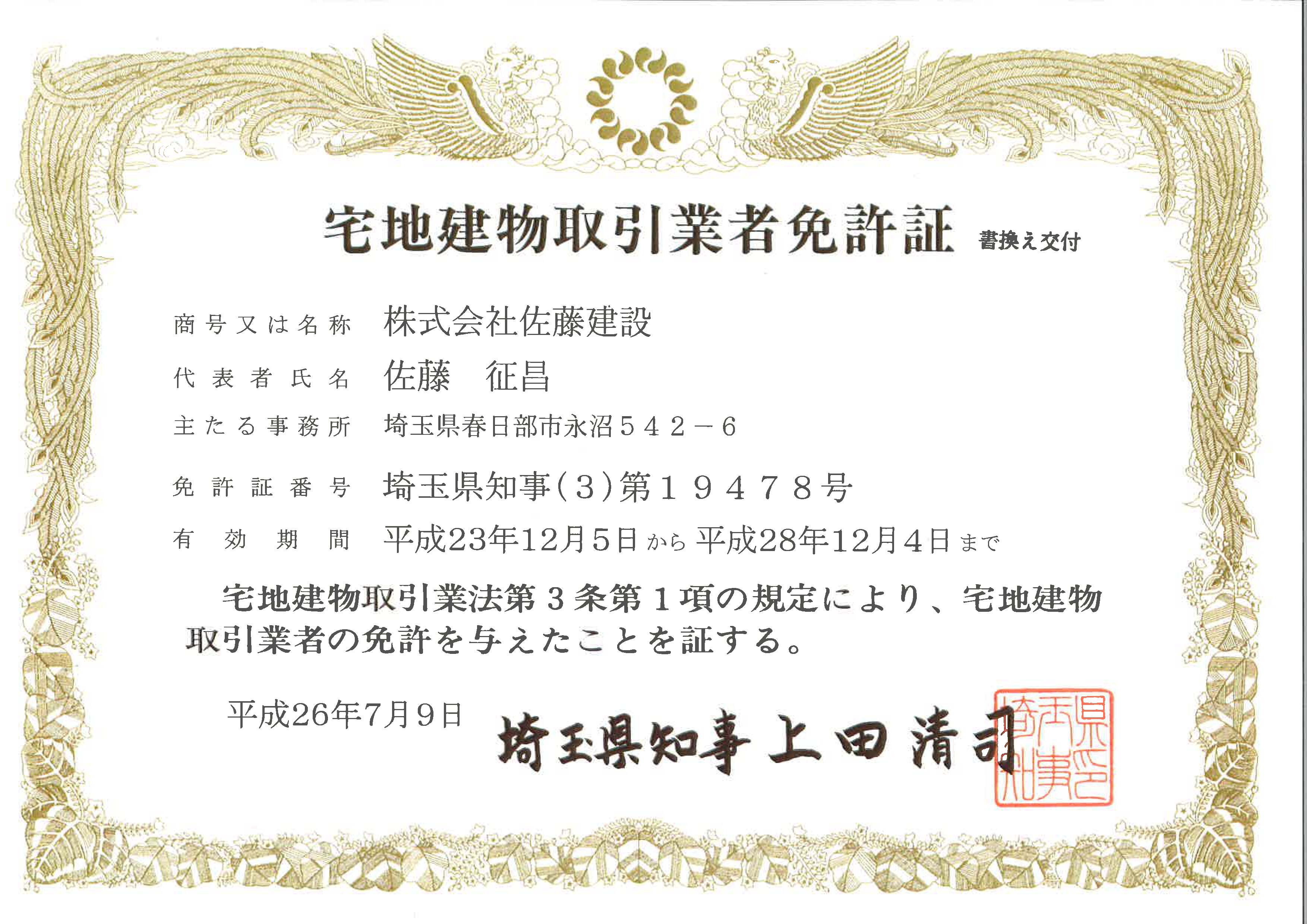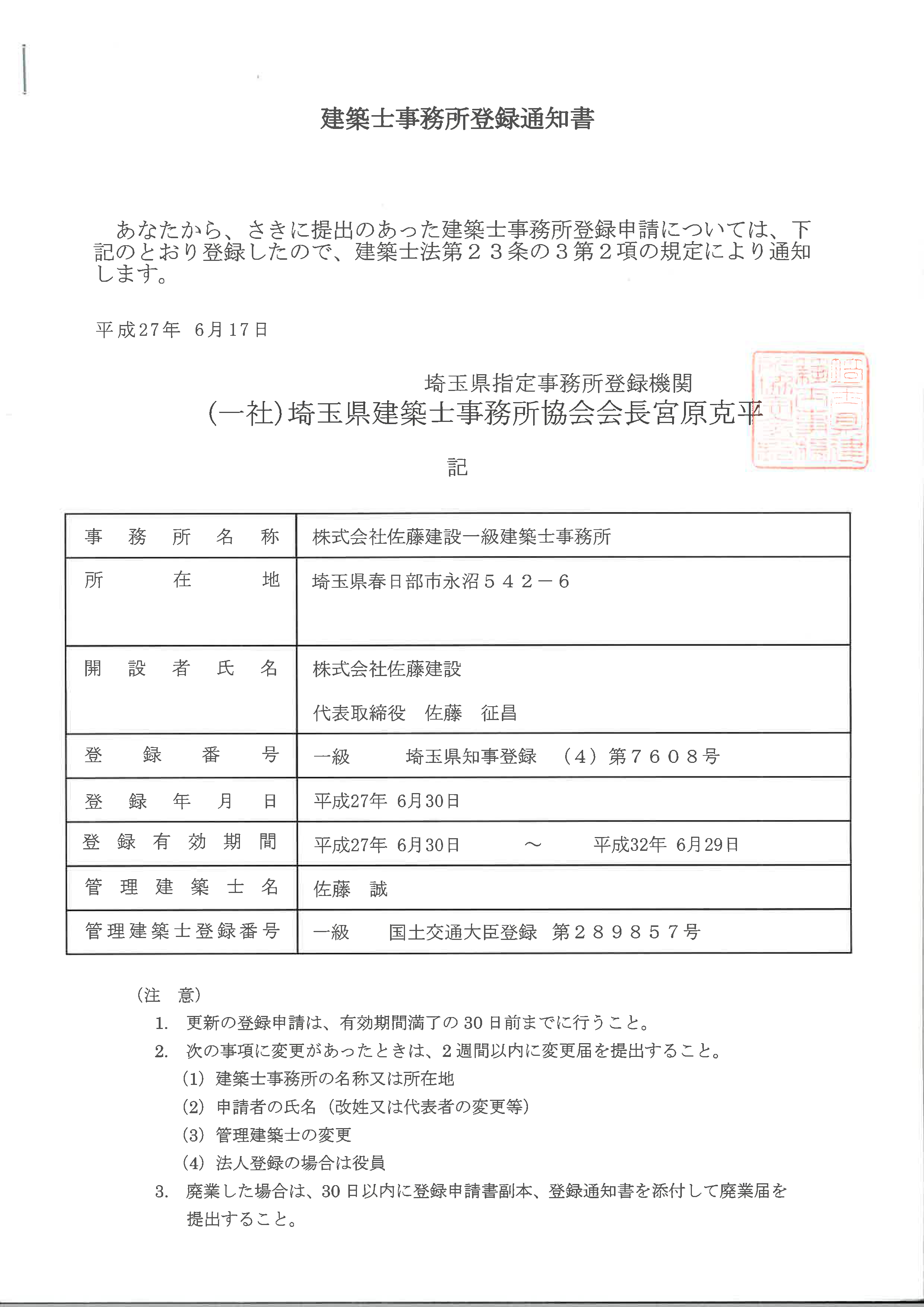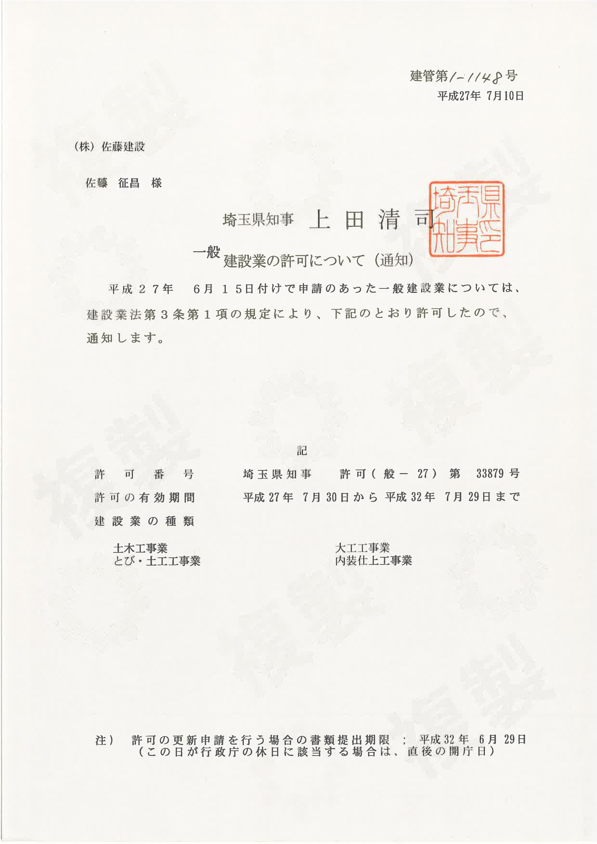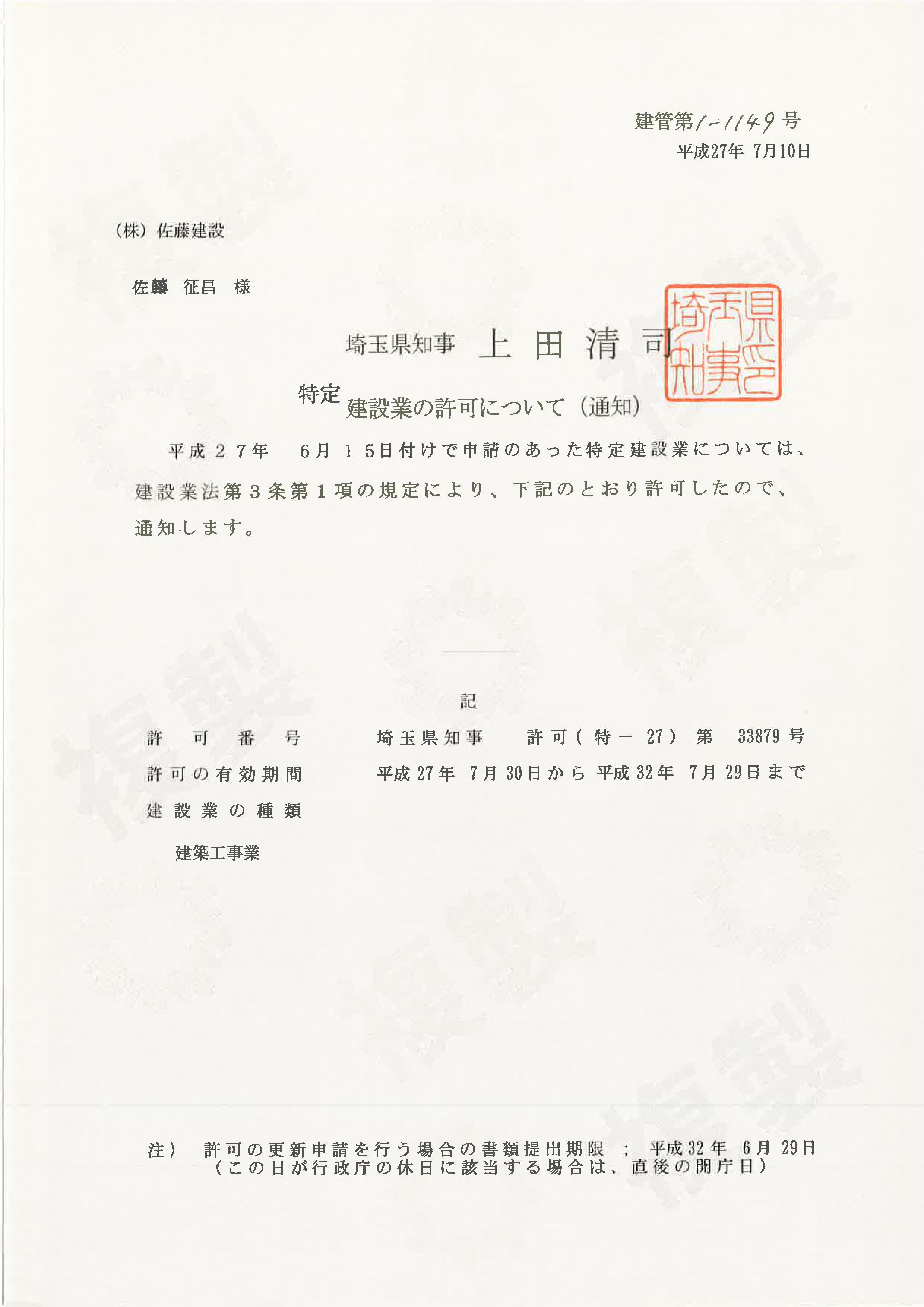 | 昭和58年6月4日 | 株式会社佐藤建設を設立 資本金¥5,000,000 |